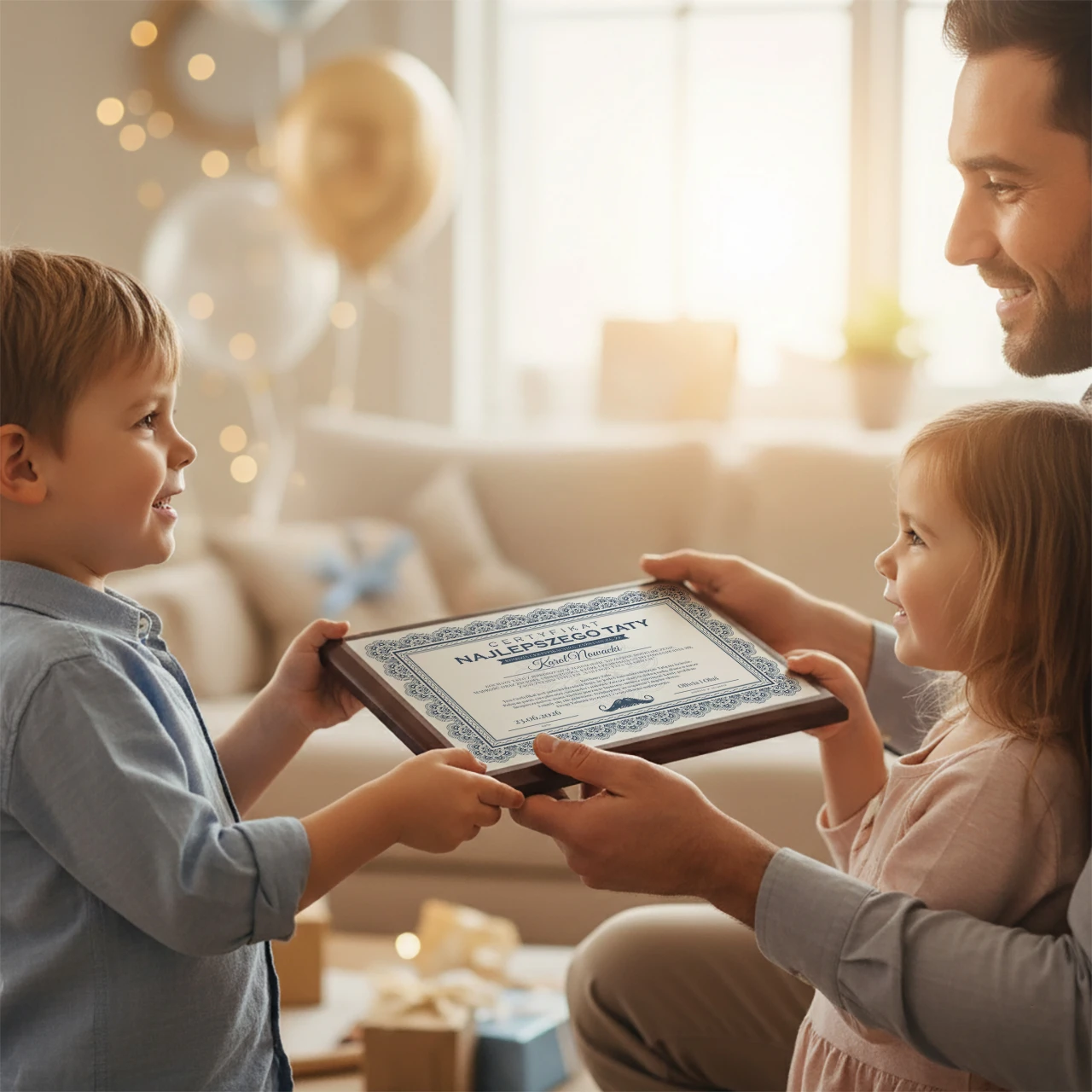 Personalizowany certyfikat dla Najlepszego Taty to wyjątkowy sposób, by wyrazić wdzięczność i miłość wobec ojca. To nie tylko dekoracja, ale prawdziwe wyróżnienie, które każdy tata chętnie zawiesi w swoim domu lub biurze. Certyfikat jest elegancko wykonany i może być spersonalizowany imieniem obdarowanego, co sprawia, że staje się jedynym w swoim rodzaju prezentem.