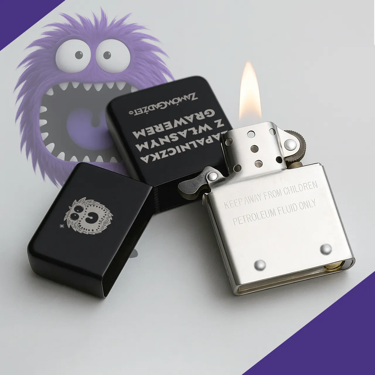 Personalizacja odbywa się w darmowym kreatorze online, gdzie w prosty sposób można dodać własne napisy i sprawdzić, jak będą prezentować się na powierzchni produktu. Taki proces tworzenia daje pełną swobodę i pewność, że gotowy projekt spełni wszystkie oczekiwania. Sugerujemy, aby nie umieszczać napisów na łączeniu otwarcia zapalniczki. Dzięki temu zapalniczka z własnym grawerem może stać się prezentem dopasowanym do wielu okazji – urodzin, rocznic, świąt czy symbolicznego gestu podkreślającego pamięć o bliskiej osobie.